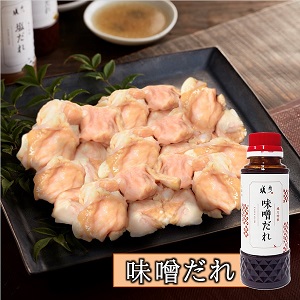 蟻月こだわりの『国産牛小腸』と、たっぷりのにんにくにコチュジャンを加え、辛味の中に旨みとコクの効いた『味噌だれ』のセット。